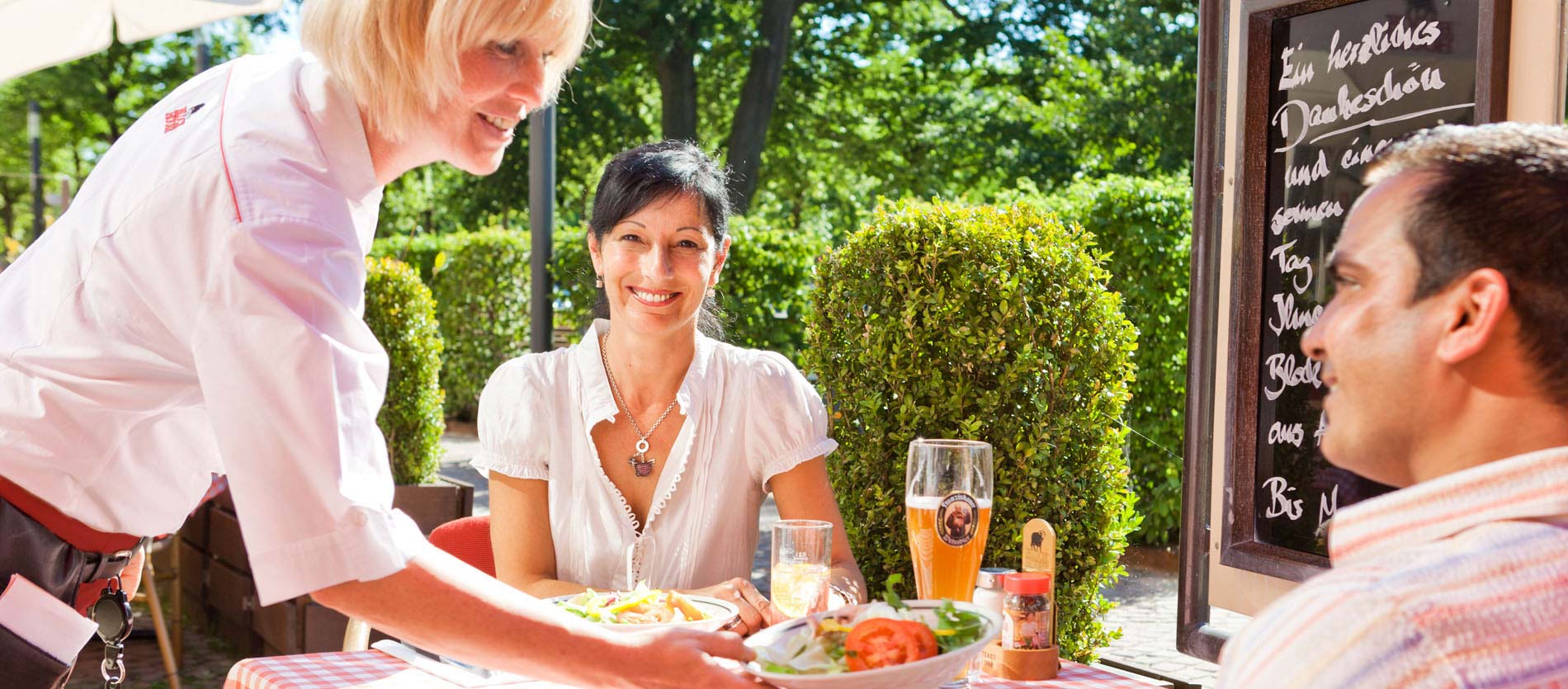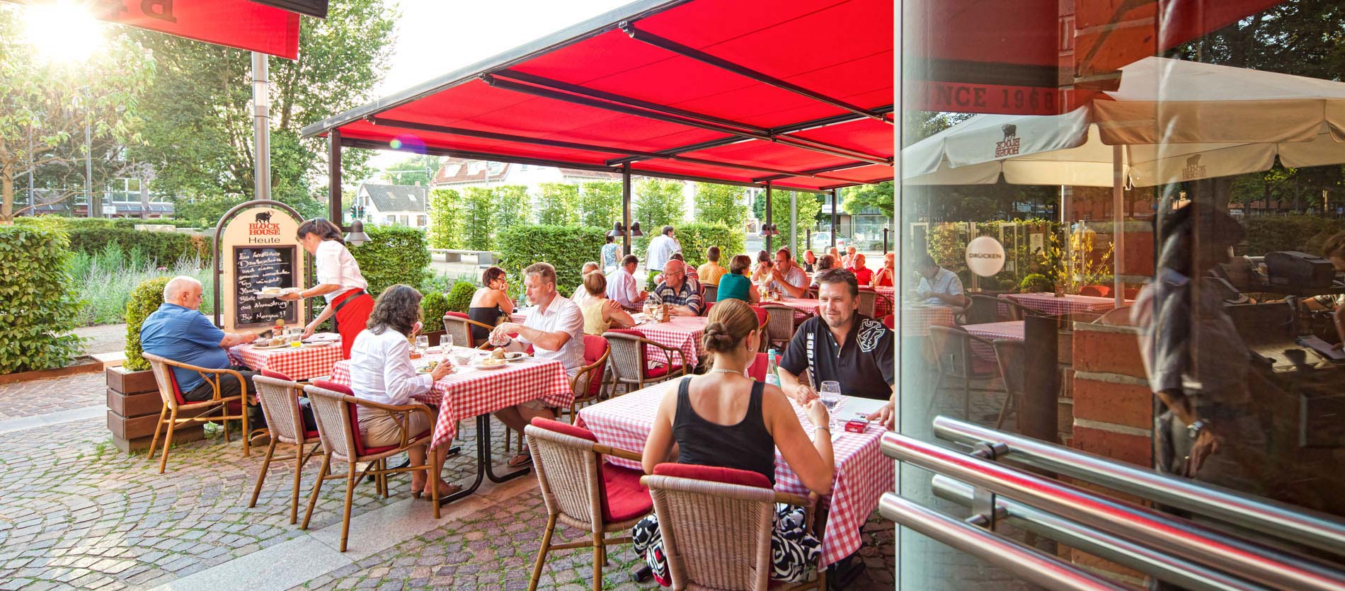 Von Ostern bis Oktober sind die 88 Plätze auf der Sonnenterrasse besonders begehrt. Ganzjährig bietet das Restaurant mit seiner großzügigen Fensterfront einen schönen Ausblick.22926 Ahrensburg Tel.: +49 (0)4102 - 543 14