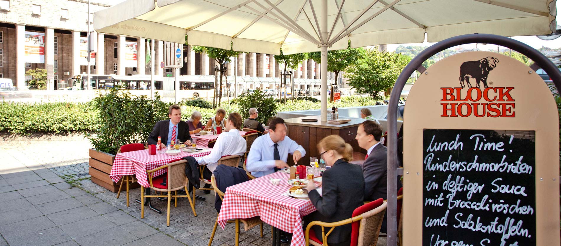 Unser Block House liegt direkt gegenüber dem Stuttgarter Hauptbahnhof, nahe der Shopping- und Flaniermeile Königstraße. Es ist Treffpunkt für Geschäftsleute, Familien und Stuttgart-Besucher aus aller Welt.