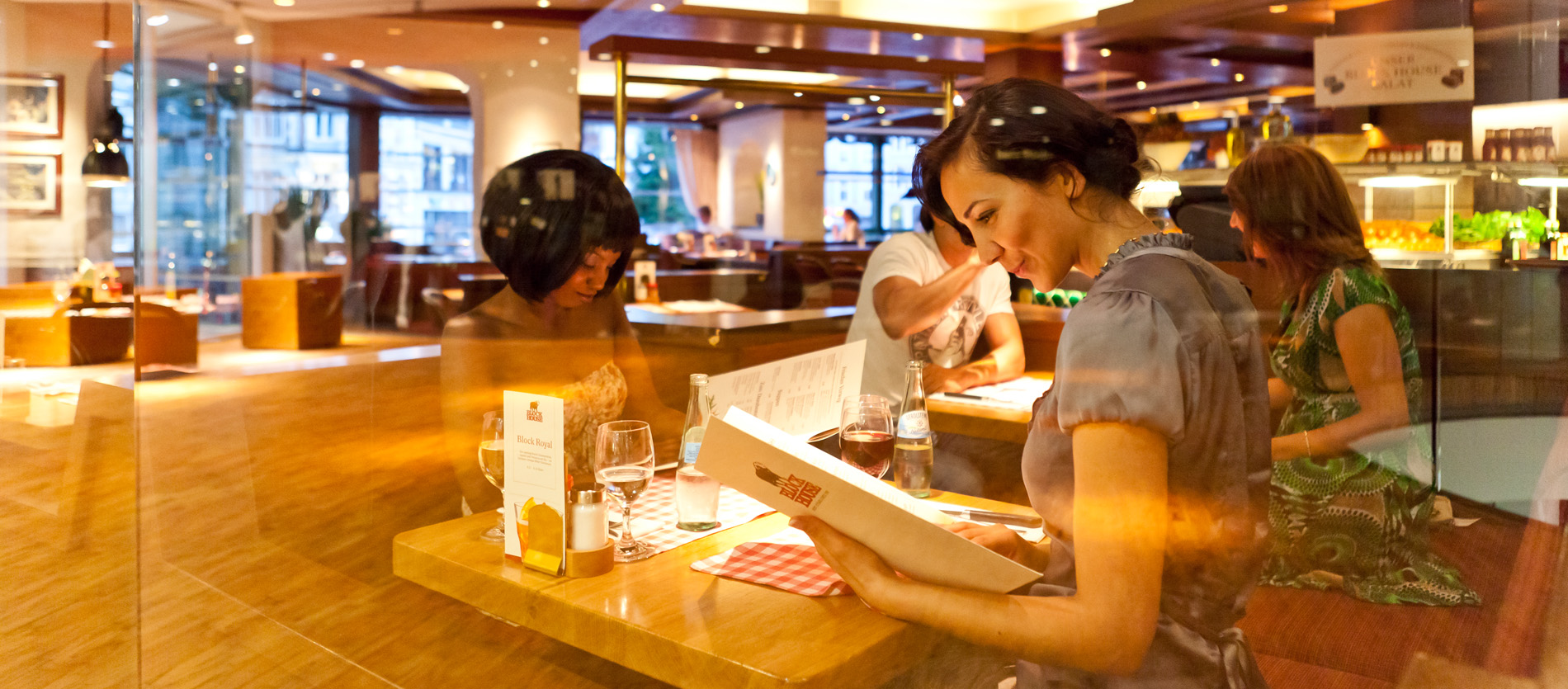... Sie bei uns zur Abwechslung auch mal von oben runter auf den Gänsemarkt schauen können? Unser Block House Restaurant finden Sie im 1. Stock der Gänsemarktpassage.